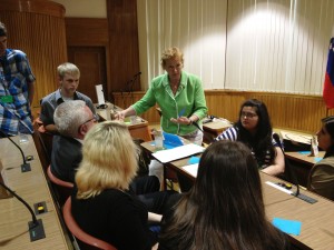 Ob koncu današnjega srečanja so se srednješolci razdelili v več skupin, skupinam pa so se pridružili tudi vsi prisotni evropski poslanci in veleposlaniki. Vsaka skupina je prejela eno vprašanje, na katerega so morali pripraviti odgovor. V skupini, v kateri je bila prisotna tudi Mazej Kukovičeva, so odgovarjali na vprašanje kje mladi vidite izhod iz krize? ?Mladi se ne zavedamo svojih potencialov in premalo sodelujemo. To se lahko spremeni, če bi postali bolj motivirani, si pridobivali več praktičnih izkušenj in bi si tako lahko sami ustvarjali svoje službe. Bistvena pri tem je uporaba informacijsko komunikacijskih tehnologij, kjer lahko širimo svojo dobro idejo med ljudi, ki bodo še prispevali k njeni izboljšavi in uresničitvi. Tako bo na koncu mogoče tu nastalo novo delovno mesto,? je odgovor skupine posredoval srednješolec Erazem.